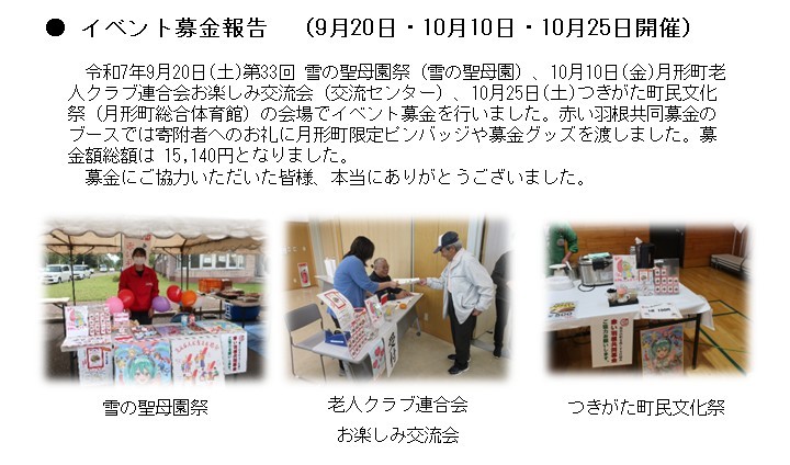 イベント募金報告(9月20日・10月10日・10月25日開催開催)