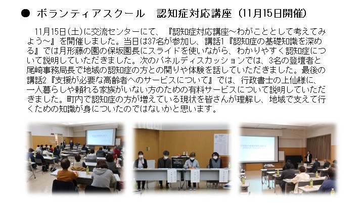 ボランティアスクール 認知症対応講座(11月15日開催開催)