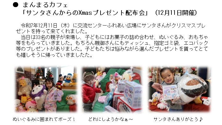 まんまるカフェ「サンタさんからのXmasプレゼント配布会」(12月11日開催開催)